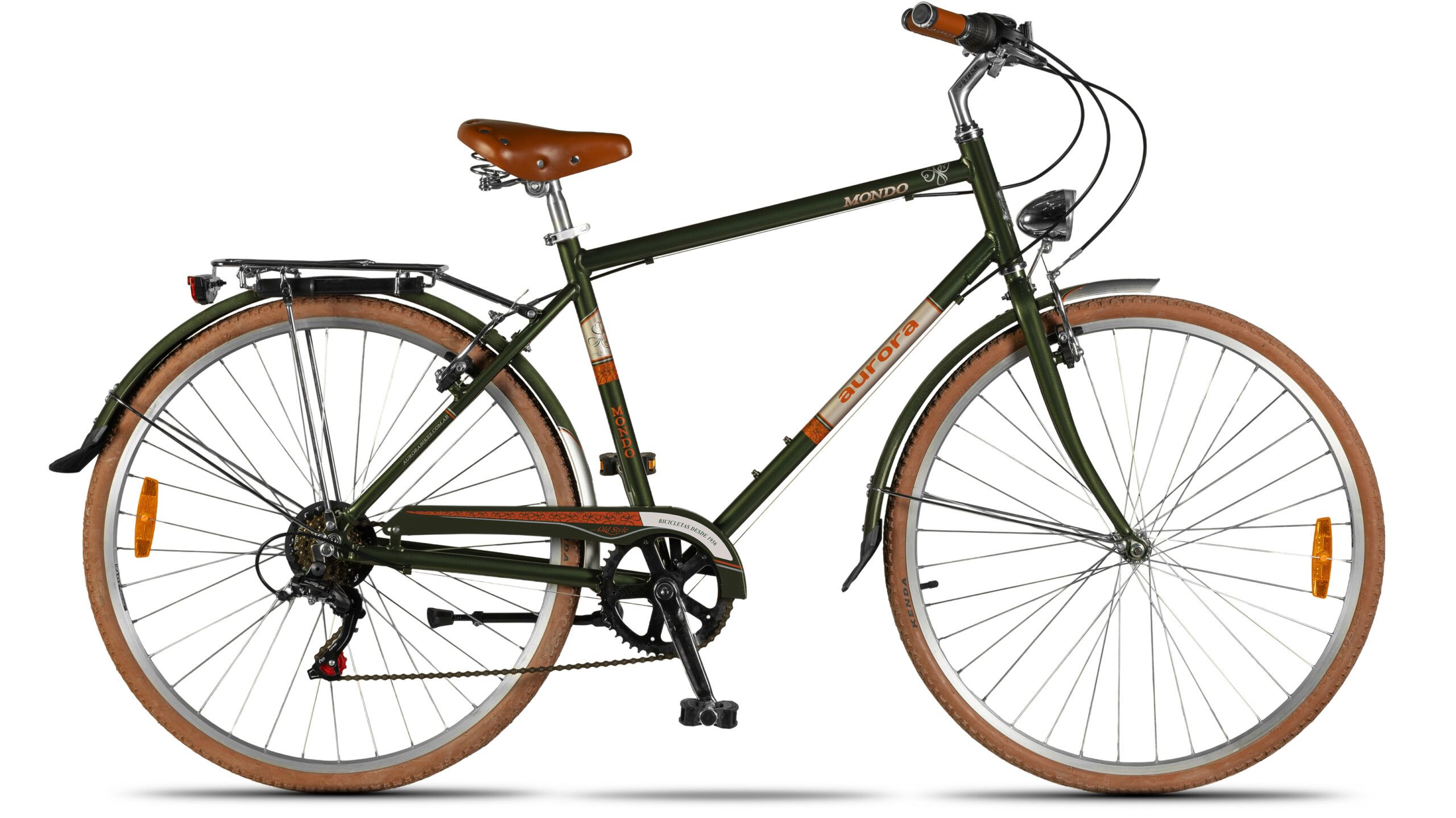 La bicicleta Aurora Mondo es un homenaje al ciclismo clásico, diseñada para el caballero que aprecia el diseño atemporal y la elegancia en sus paseos urbanos. Su cuadro de aluminio rodado 28 presenta una geometría de paseo tradicional que, además de evocar una estética retro, garantiza una postura de conducción erguida y confortable, ideal para disfrutar de la ciudad con una perspectiva relajada y distinguida.