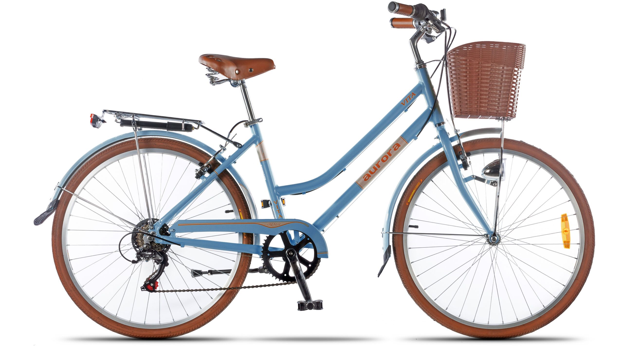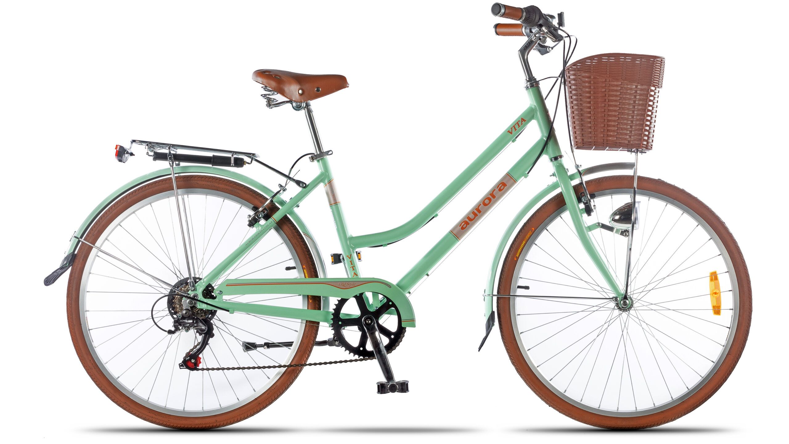 Inflador, canasto, portapaquetes, timbre, luces LED, pié de apoyo de aluminio, guardabarros, cubrecadenas.